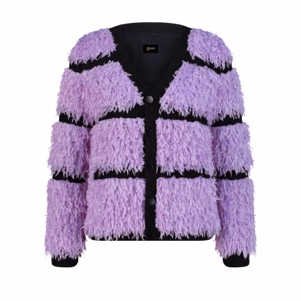 - Embrace bold texture and ultimate coziness with the Lux Fuzz Cardigan. Designed to turn heads while keeping you warm, this eye-catching piece blends plush fabric with a modern contrast design.